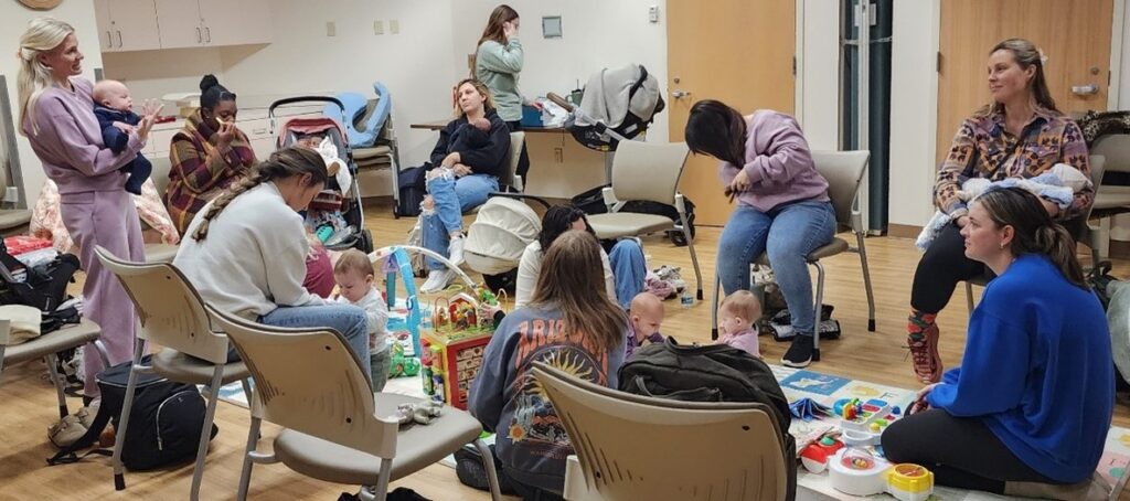 What makes these groups especially helpful is they include lactation consultant services and breastfeeding support, without the need for an additional appointment! A trained lactation specialist is present during many group sessions to answer questions, offer tips, and help moms feel more confident in their feeding journey. This kind of hands-on guidance — combined with camaraderie from other mothers — can make a real difference in how they feel. Beyond expert support, these gatherings are simply a place for moms to meet others who “get it.” Sharing stories about feeding, schedules, self-care, navigating expectations, and everyday life creates a sense of community that many new moms say is just as valuable as the information they gain.